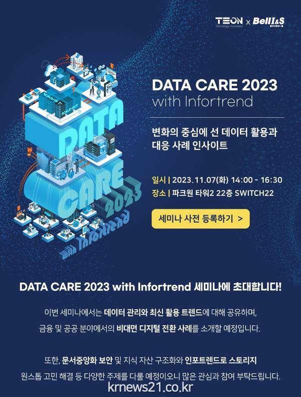 B2B 스토리지 시장을 선도하는 기업 테온(대표 이승준)은 11월 7일 ‘DATA CARE 2023 with infortrend 세미나’를 개최해 인포트렌드(infortrend)의 제품·기술들과 각종 솔루션을 통한 효율적인 데이터 관리의 기준을 새롭게 제시했다고 밝혔다.