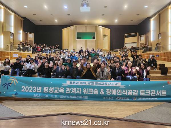 ▲ 사진=강원특별자치도강원특별자치도는 11월 20일(월)부터 21일(화)까지 1박2일동안 춘천시 남이섬에서 “2023년 평생교육 관계자 워크숍 및 장애인식공감 토크콘서트”를 개최했다.