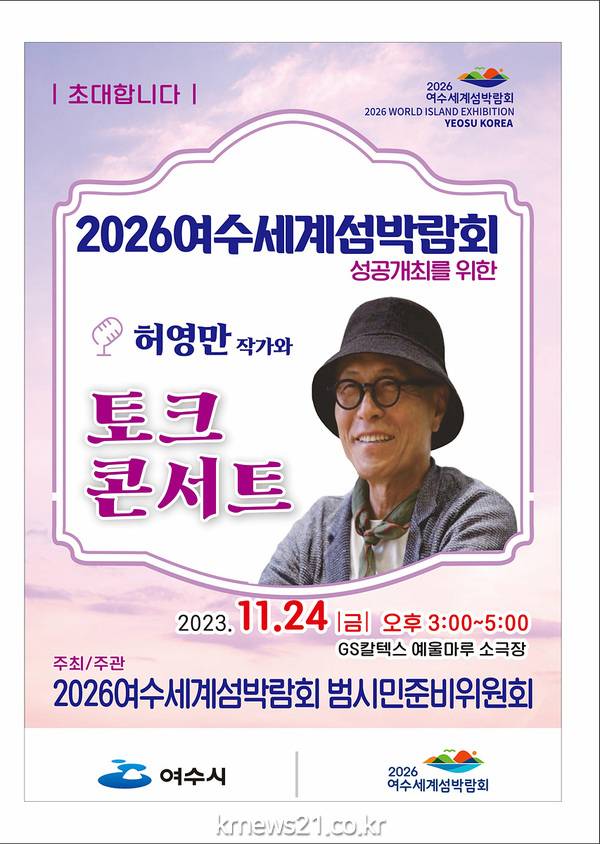 ▲ 사진=전라남도 여수시2026여수세계섬박람회 범시민준비위원회(이하 범시민준비위, 위원장 안규철)가 오는 24일 오후 3시 GS칼텍스 예울마루 소극장에서 2026여수세계섬박람회 성공개최 기원, ‘허영만 토크콘서트’를 개최한다.