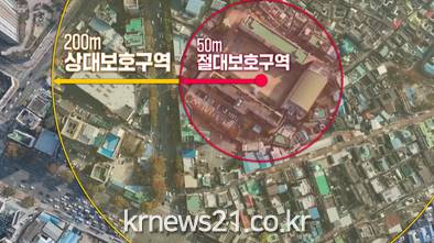 교육환경법상 학교에서 50미터까지는 절대보호구역, 200미터까지는 상대보호구역으로 원칙적으로 유해 업종 진입이 금지된다.