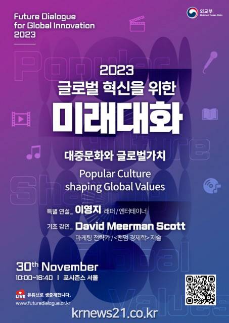 ▲ 사진=외교부외교부는 11월 30일(목) 서울 포시즌스호텔에서 ‘대중문화와 글로벌 가치’를 주제로 ‘2023 글로벌 혁신을 위한 미래대화*’를 개최한다.