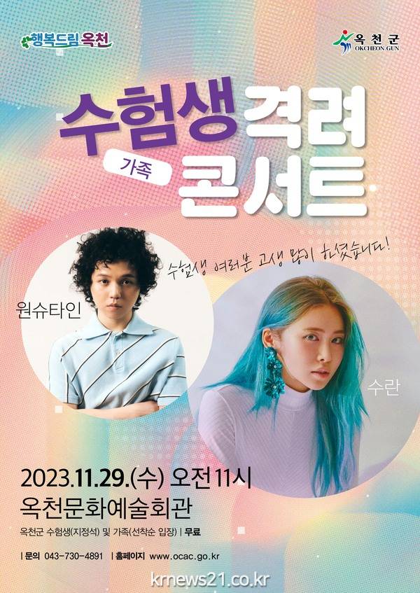 ▲ 사진=충청북도 옥천군옥천군은 오는 29일 오전 11시에 문화예술회관에서 기획공연 ‘수험생(가족) 격려 콘서트’를 개최한다.