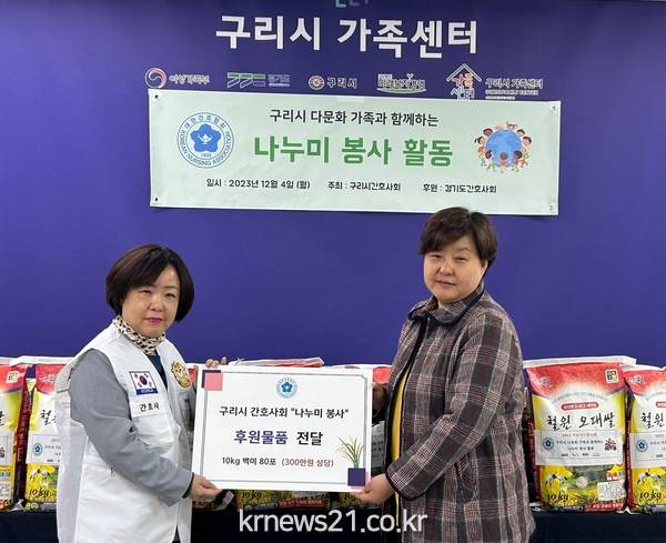 한편, 구리시 간호사회는 지난 2018년부터 매년 쌀을 후원하는 등 어려운 이웃들을 위해 꾸준히 후원 활동을 진행하고 있다.