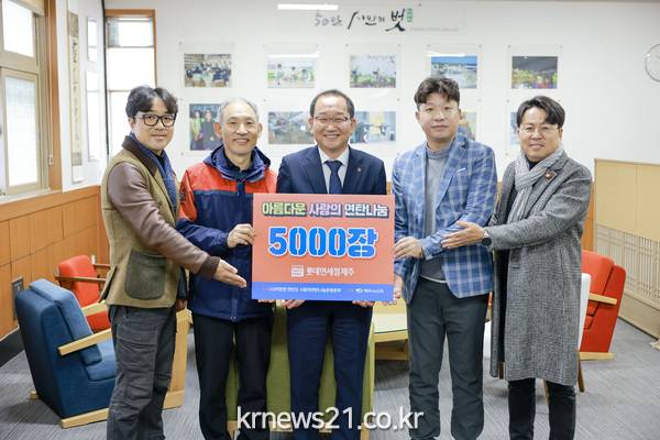 ▲ 사진=제주특별자치도강병삼 제주시장은 12월 12일 집무실에서 (사)따뜻한 한반도 사랑의 연탄나눔본부로부터 연탄 5천 장과 백미를 전달받았다.