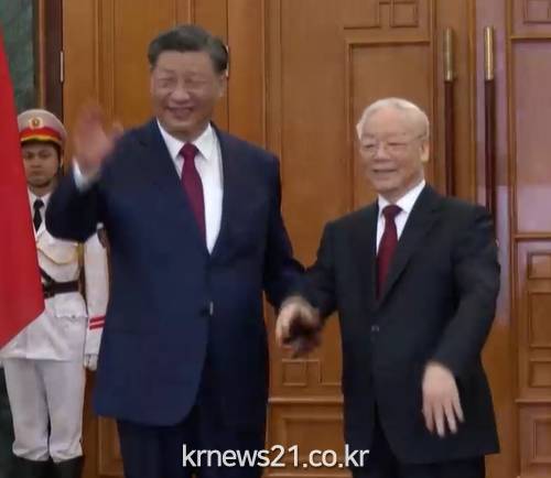 ▲ 사진=KBS NEWS 영상 캡처시진핑 중국 국가 주석이 6년여 만에 베트남을 국빈 방문했다.