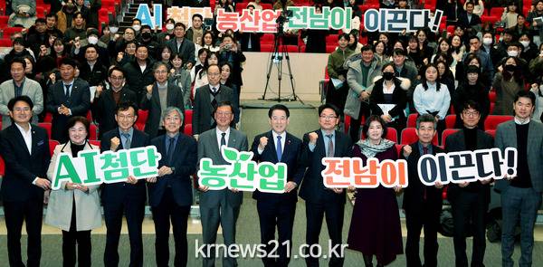 ▲ 사진=전라남도전라남도는 19일 오후 도청 김대중강당에서 ‘인공지능(AI) 첨단농산업 융복합지구 조성’ 포럼을 열어 전남이 대한민국을 농업 선진국으로 이끌기 위한 방향을 구상했다.