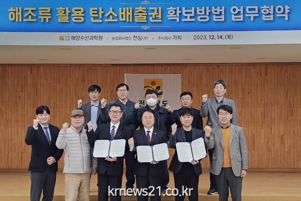 이에 전남도는 두 기업과 손잡고 범국가적 과제인 해조를 활용한 탄소배출권 확보를 위한 관련 연구에 집중할 계획이다.