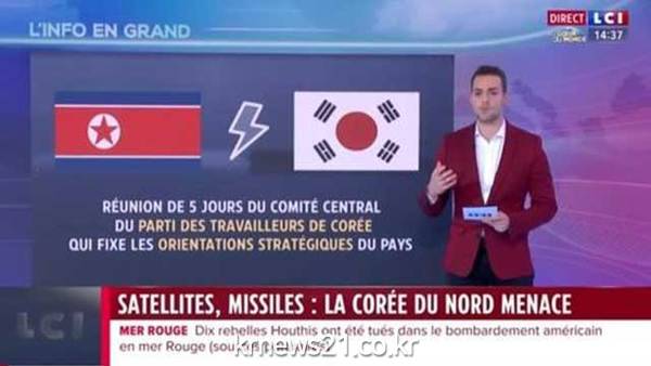 프랑스 민영 보도채널 LCI는 현지시각 3일 남북 간 긴장 상황을 보도하며 태극기의 태극 문양을 붉은 원으로 표기해 방송했다.