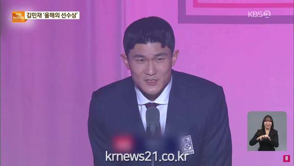 김민재는 최근 4년 연속 수상자였던 간판 손흥민을 2위로 밀어내고, 영광의 자리에 올랐다.