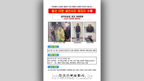 경기 고양시의 한 지하 다방에서 60대 점주를 살해하고 도주 중인 50대 용의자를 경찰이 공개수배했다.
