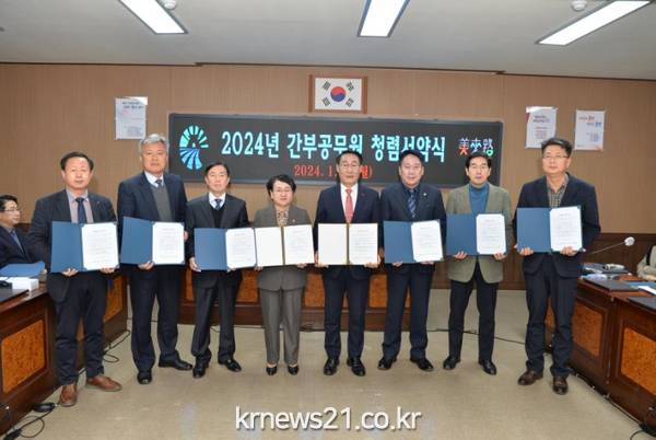 군은 8일 군청회의실에서 이용록 군수와 조광희 부군수를 비롯해 본청, 직속기관, 사업소, 읍·면장 등 간부공무원 및 부서장 40여 명이 참석한 가운데 ‘청렴도 TOP 부패 ZERO’ 비전달성을 위한 ‘2024년 간부공무원 청렴 서약식’을 개최했다.
