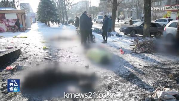 현지 시각 21일 오전, 러시아가 점령하고 있는 도네츠크 외곽의 한 시장에 포탄이 떨어졌다.