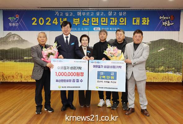 황정숙 부산면장은 “부산면을 위해 아낌없이 이웃돕기 성금을 기탁해 주신 세 분께 진심으로 감사드린다”며 “기탁해 주신 성금은 지역 내 어려운 이웃이 따뜻한 설 명절을 보낼 수 있도록 전달하겠다”고 말했다.