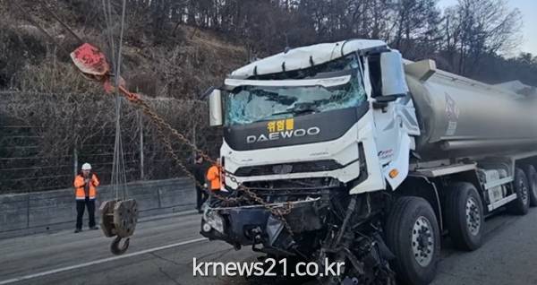 경찰은 숨진 운전자가 몰던 14톤 화물차가 앞서가던 25톤 화물차를 들이받으면서 사고가 난 것으로 보고 있다.ㅍ