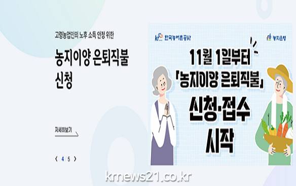 특히 올해 신규 시행 예정인 농지이양은 퇴직불사업은 고령 농업인이 지원조건에 맞는 농지를 직접 농어촌공사에 매도하거나 농지연금에 가입할 경우, 매월 1ha당 40~50만 원의 보조금을 최대 10년간 지급하여 기존 사업과 연계 지원이 확대될 예정이다.