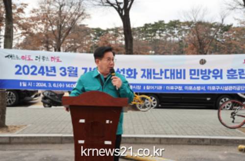 ▲ 사진=마포구청박강수 마포구청장은 6일 오후, 마포농수산물시장에서 재난 상황에 대비하기 위한 민방위훈련을 실시하고 시장 내 시설물과 소방로 확보 상황 등을 점검했다.