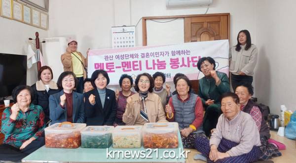 이날 행사에서는 관산 지역 여성단체 회원들이 결혼이주여성들의 멘토로 나서 돼지고기 주물럭, 배추김치, 나물 등 전통 한국 음식의 조리 방법을 알려주었다.