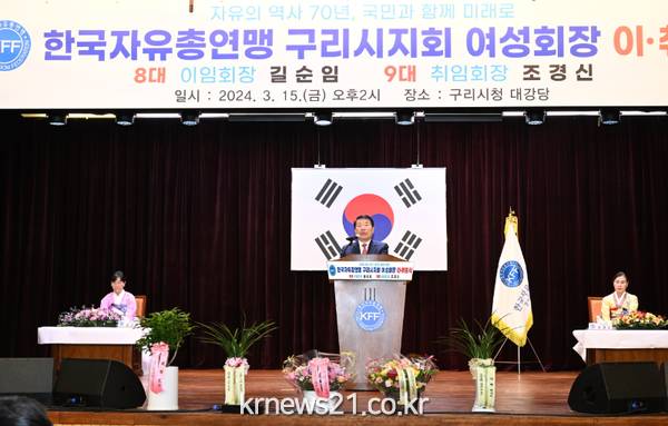 ▲ 사진=구리시청구리시는 지난 15일 구리시청 1층 대강당에서 한국자유총연맹 구리시지회(회장 김석진) 제8·9대 여성회장 이·취임식을 개최했다.