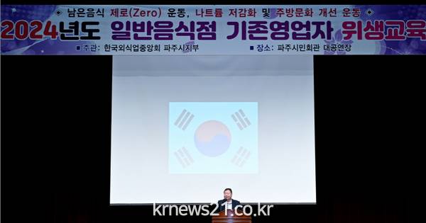 파주시는 4월 23일부터 24일까지 시민회관 대공연장에서 관내 일반음식점 영업자를 대상으로 ‘2024년 일반음식점 기존영업자 식품위생교육’을 실시했다.