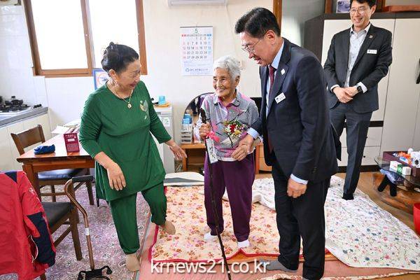 먼저 양평군노인복지관을 찾아 어르신들에게 따뜻한 한 끼를 직접 배식하고 안부를 살피는 뜻깊은 소통의 시간을 가졌으며, 이어 양평읍 거주 이선범 어르신 댁, 용문면 신재옥 어르신 댁, 지평면 김정희 어르신 댁을 차례로 방문하여 공경과 감사의 마음을 담아 건강과 장수를 상징하는 장수지팡이를 전달했다.