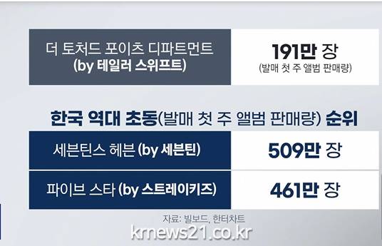 세계적인 팝스타 테일러 스위프트가 1주일 동안 판 새 앨범이 190만 장 정도인데, 우리 세븐틴은 1주일에 509만 장, 스트레이 키즈는 460만 장을 팔았다.
