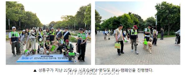 서울 성동구(구청장 정원오)는 지난 22일 서울숲에서 성동구 반려견 순찰대 및 명예동물보호관과 함께 ‘펫티켓 홍보 캠페인’을 전개했다.