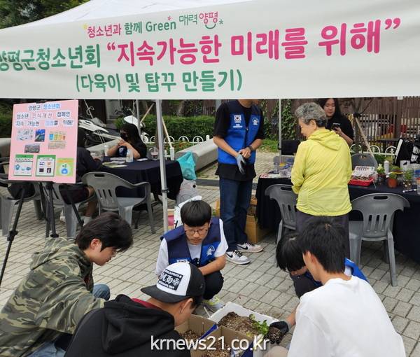 이날 캠페인에는 ‘청소년과 함께Green 매력양평’이라는 슬로건을 걸고 1388청소년지원단, 학교 밖 청소년 꿈드림, 양평군청소년회가 함께 참여하여 양평군 고위기청소년(자해, 학교폭력) 예방 캠페인, 학교 밖 청소년 인식개선, 기후위기 극복을 위한 다양한 체험부스 6개를 운영했다.