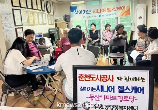 후평1동행정복지센터(동장 홍선영)와 춘천도시공사(사장 홍영)는 30일 동산아파트 경로당을 방문해 어르신들을 대상으로 건강 프로그램을 진행했다.