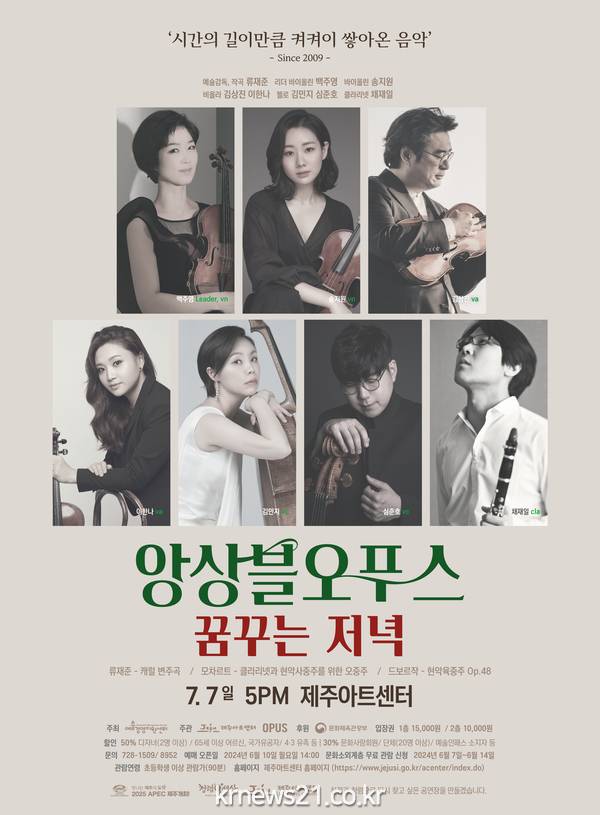 제주아트센터는 7월 7일(일) 오후 5시에 <</span>앙상블오푸스의 ‘꿈꾸는 저녁’> 기획공연을 개최한다.