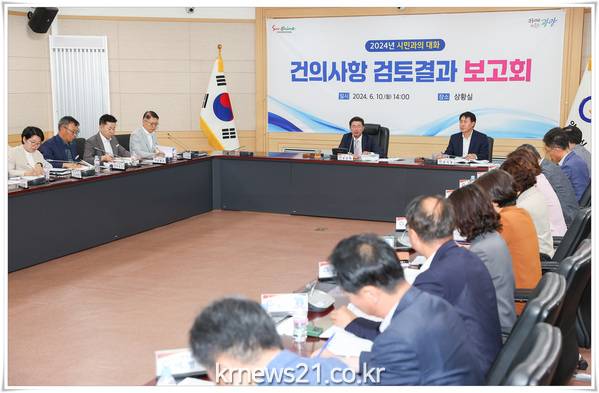 이날 보고회는 지난 4월 23일부터 30일까지 진행된 ‘시민과의 대화’에서 건의된 425건(현장 196, 서면 229)의 건의사항에 대해 부서별 검토 결과와 향후 추진계획을 중점적으로 논의하기 위해 마련됐다.