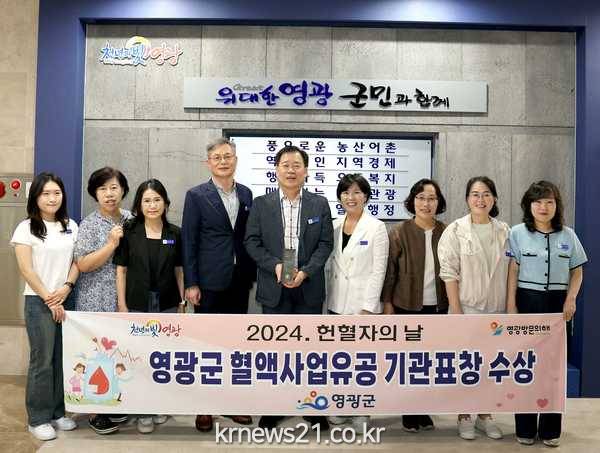 영광군(군수권한대행 김정섭)은 지난 6월 14일 대한적십자사의 ‘2024년 헌혈자의 날 기념 인도주의 운동’에 적극 참여하여, 혈액사업 발전에 기여한 공로를 인정받아 기관표창을 수상했다.