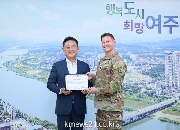 지난 7월 3일, 이충우 여주시장은 미 육군 8군 사령관 크리스토퍼 라니브(Christopher LaNeve) 중장으로부터 한미 문화교류 협력 및 우호 증진에 기여한 것에 대한 감사장을 받았다. 감사장은 미8군 사령부 정치·군사 고문 김태업 장군과 민사처장 무드리니치 마크(Mudrinich Mark) 중령이 여주시를 방문하여 전달하였다