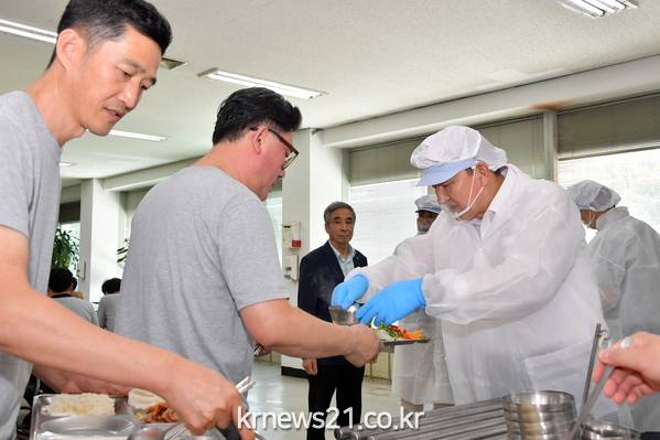 이번 배식 봉사는 소통 행정을 중시하는 이병노 군수의 군정 방침에 따라 마련됐으며, 이어진 오찬 자리에서는 근로자들의 노고를 위로하고 기업체의 애로사항을 청취했다.