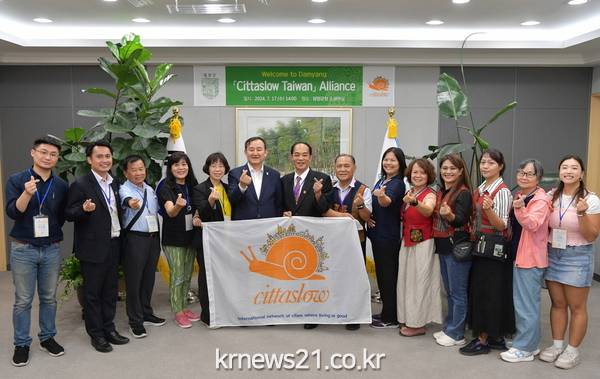 담양군에 따르면 지난 17일 대만 슬로시티 인증도시 및 후보지역 시장, 관계자 15명이 담양 슬로시티를 방문하여 국제 슬로시티 교류 활성화 방안을 논의했다.