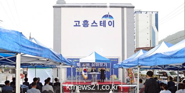 고흥군(군수 공영민)이 19일 공영민 군수를 비롯해 류제동 군의장, 송형곤 도의원, 기관 사회단체장, 두 지역 살아보기 참여 세대 등 100여 명이 참석한 가운데 ‘두 지역 살아보기 주말 愛 고흥 愛’ 고흥스테이 준공식을 가졌다.