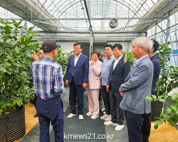 장성군이 조성한 대규모 레몬 재배단지에 지난 18일 전라남도의회 농수산위원회 위원들이 방문했다.