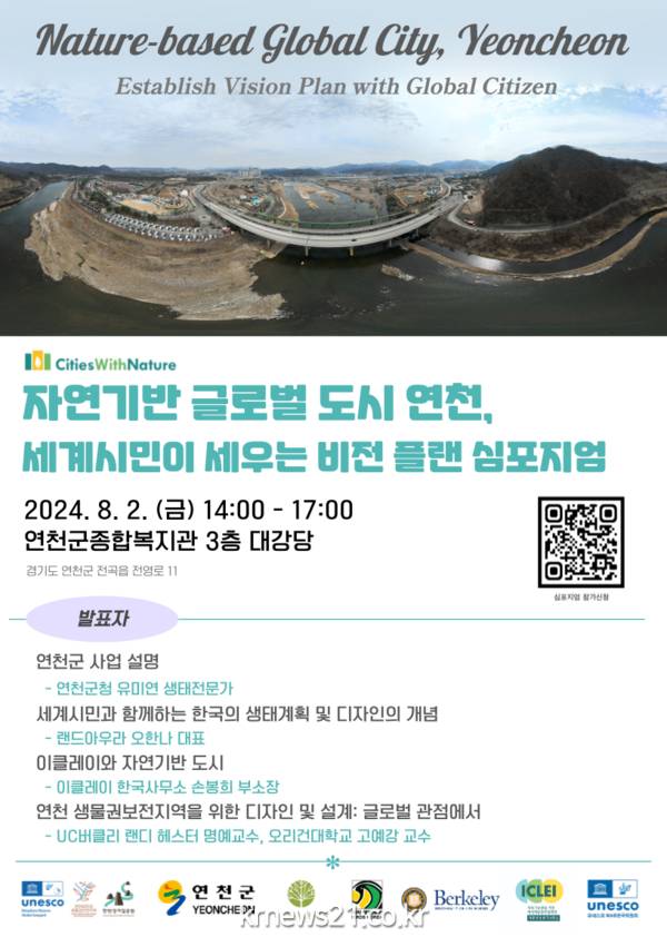 군 관계자는 “보다 많은 분들의 참여로 이번 심포지엄을 통해 연천군이 자연기반 글로벌 도시가 되기 위한 기초를 마련할 수 있기를 바란다”고 밝혔다.