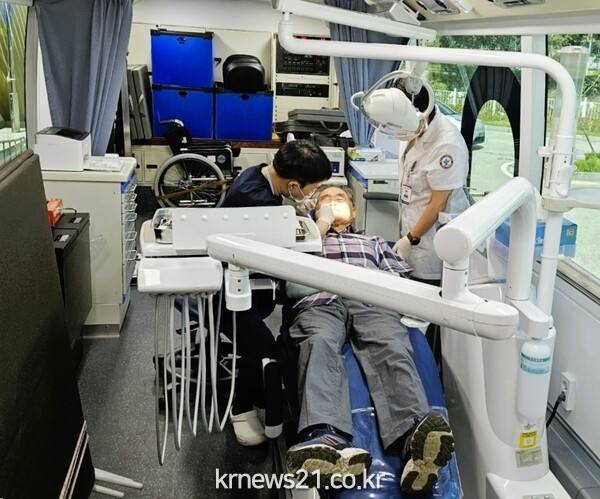 장성군이 25일 ‘찾아가는 장애인 건강지킴이 시범사업’의 일환으로 장성군장애인종합복지관을 찾은 전남건강버스에 의료 인력을 지원했다.