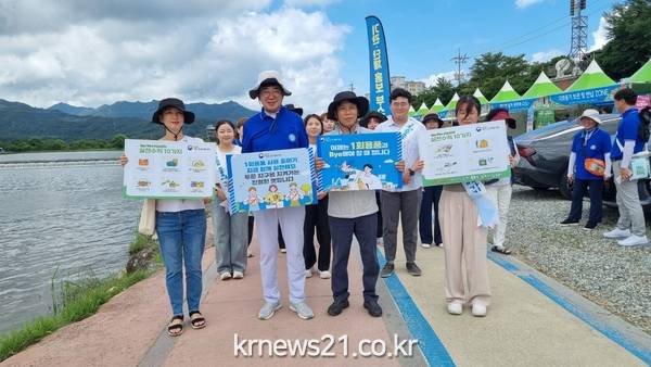 장흥군은 1일 물축제 행사장에서 ‘1회용품 Bye’ 슬로건으로 캠페인을 전개했다.