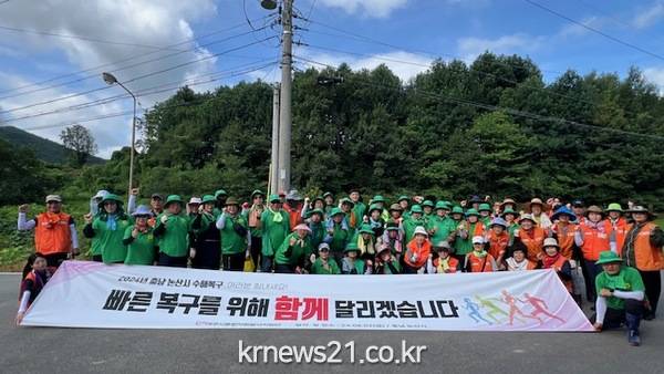 여주시새마을회(회장 황은미)는 여주시새마을회장단(협의회장 이진표, 부녀회장 길경숙) 및 각 읍·면·동 새마을지도자회장단은 지난 8월 2일 특별재난지역으로 지정 된 충남 논산시 가야곡면에서 여주시자원봉사센터(센터장 박은영)와 연계하여 수해 농가 복구 작업을 펼쳤다.