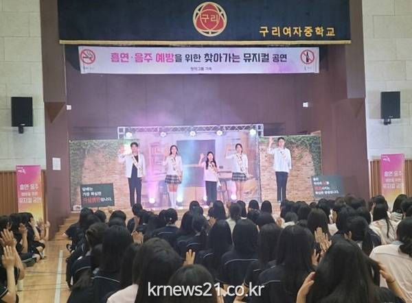 구리시(시장 백경현)는 8월 8일 구리여자중학교 체육관에서 전 교생 217명이 참석한 가운데, 청소년들의 흡연·음주 예방을 위한 찾아가는 뮤지컬 공연을 개최했다.