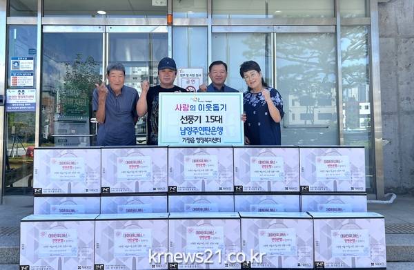 남양주연탄은행은 19일 가평읍 행정복지센터를 방문해 선풍기 15대를 전달했다. 이번 성품은 지난 16일 에너지 취약계층을 지원하기 위해 ㈜데이터유니버스에서 밥상공동체 연탄은행에 후원한 선풍기로, 가평읍 취약계층에게 전달할 예정이다.