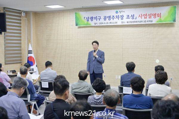 원주시는 8월 20일 오전 11시 봉산동 행정복지센터 3층 회의실에서 삼광지구 공영주차장 조성 사업설명회를 개최했다.