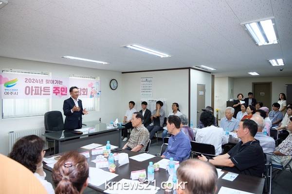 여주시(시장 이충우)는 지난 8월 28일 오학동 신도브래뉴아파트 관리사무소 3층회의실에서 엄우현 통장 및 입주민, 관계 공무원 등 43여명이 참석한 가운데 올해 두 번째 2024년 찾아가는 아파트 주민 간담회를 개최했다.