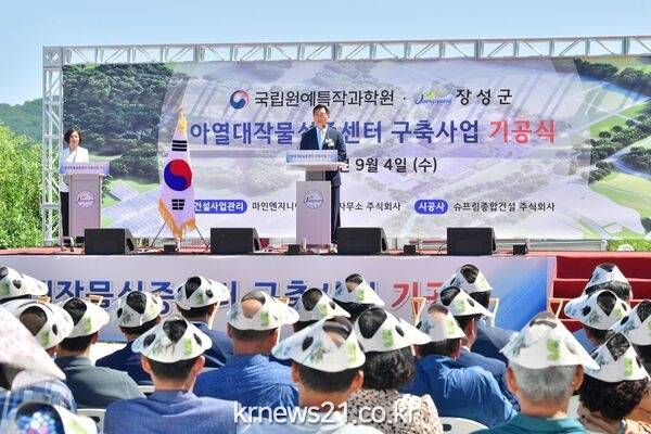 국립아열대작물실증센터는 기후 변화에 대응해 농업의 미래를 준비하는 농촌진흥청 산하 연구기관이다. 아열대작물 재배 연구‧실증, 산업화 촉진 등을 추진한다.센터 건립은 대지면적 22만 7783㎡, 바닥면적 합계 4358㎡ 규모로 사업비 370억 원 전액이 국비 투입되는 국책사업이다. 부지 내 종합연구동, 관리사, 경비실 등이 들어서며 사업기간은 2020년부터 2026년까지 7년이다.장성군은 그간 소규모 환경영향평가, 재해영향평가, 실시설계 등 센터 건립에 필요한 행정 절차들이 차질 없이 진행될 수 있도록 농진청, 전남도와 적극 협력해 왔다.국립아열대작물실증센터 장성 건립의 의미는 크게 두 가지로 압축할 수 있다. 가장 주목할 부분은 수도권 등 내륙지방 아열대작물 재배 대응이다. 다른 아열대작물 연구시설들이 해안지역에 조성된 데 반해 장성군은 전남 최북단 내륙에 자리하고 있다. 온난화에 따른 전국적인 아열대작물 재배 확산에 있어 중추적인 역할을 맡을 것으로 보인다.전남의 관문이자 호남고속도로, KTX 등이 경유하는 교통 요충지라는 점도 눈여겨볼 대목이다. 연구 결과 공유가 용이해 농업분야 기후변화 대응 효율성 및 신속성을 한층 높일 수 있다. 아열대작물 재배 연구의 전초기지로 자리매김할 전망이다.김한종 장성군수는 “국립아열대작물실증센터가 장성 발전의 새로운 전기 마련과 신소득 기회 창출, 나아가 국가 미래농업을 선도하는 핵심 역할을 해낼 것으로 기대한다”고 말했다.한편, 장성군은 아열대과일 재배에도 박차를 가하고 있다. 2022년부터 신소득 아열대작물로 육성하고 있는 레몬은 총 12농가 3.8헥타르(ha) 규모로 재배 중이며, 올가을 첫 출하를 기다리고 있다. 지난 8월부터 생산을 시작한 애플망고도 고부가가치를 지닌 명품 아열대과일로 소비시장에서 각광받고 있다.