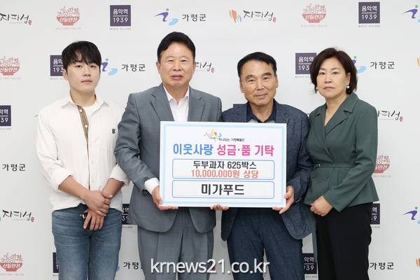 미가푸드는 가평읍에 소재한 두부과자 공장이다. 지난해 두부과자 400박스 기탁을 시작으로 올해는 이웃돕기 성금을 가평읍에 500만원, 군청에는 1,200만원을 기탁하는 등 어려운 이웃들에게 꾸준히 온정을 이어오고 있다.