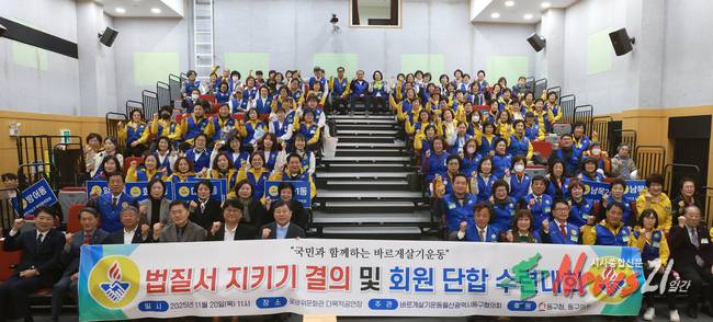 동구청[뉴스21일간=임정훈]바르게살기운동 울산동구협의회(회장 유순식)는 11월 20일 오전 11시 꽃바위문화관 3층 다목적공연장에서 2025년 법질서 지키기 결의 및 회원 단합 수련대회를 개최했다. 이번 행사는 바르게 회원과 내빈 등 150여명이 참석한 가운데 진행되었으며, 법질서 준수 의식을 확립하고 회원 간 소통과 화합을 도모하는 뜻...
