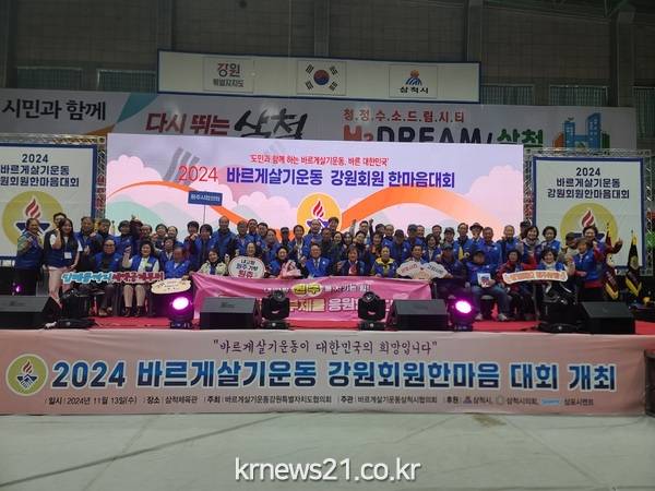 □ 삼척체육관에서 열린 바르게살기운동 강원회원 한마음대회에는 도내 바르게살기운동 회원 1,300여 명이 참여해 사회적 갈등 해소, 지역 균형 발전, 사회통합과 바른 대한민국을 만들어 나가기 위한 선도적인 역할을 다짐했다.