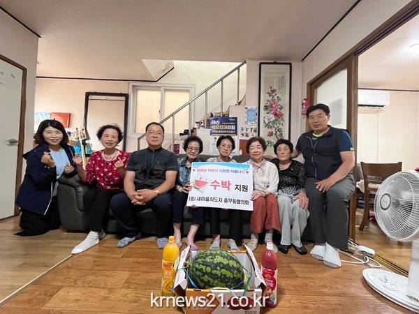 서구 충무동 새마을지도자협의회(회장 최덕원)는 7월 11일 관내 경로당 5곳에 수박과 음료를 지원하였다.
