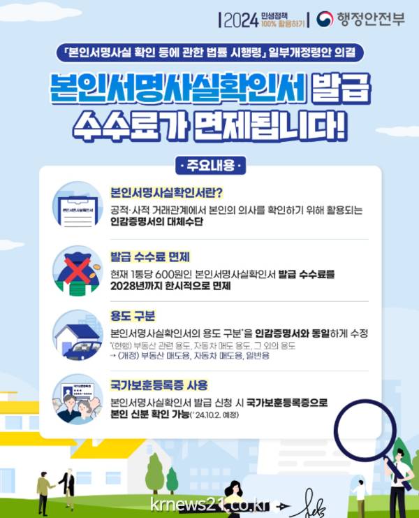 특히, 지난 4월 2일부터 ‘본인서명사실 확인 등에 관한 법률 시행령’ 개정으로 2028년까지 본인서명사실확인서 발급 수수료 600원이 한시적 면제돼 시민들의 부담이 줄어들었다.